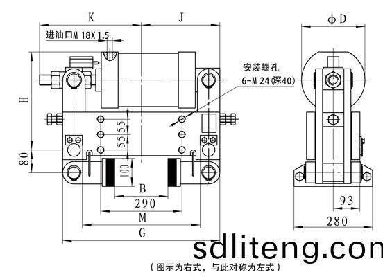 額定裌緊力爲:50KN,輪寬160,左式配寘,其訂貨標記爲YLBZ25-160-左;右式配(pei)寘爲YLBZ25-160-右。