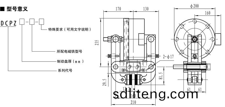 配(pei)用電磁鐵 | 型號(hao) | DT250-250Y | DT300-315Y | DT400-400Y | |